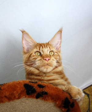 на ушах это не кисточки!!!! это ЩЁТКИ!!!!! супер!А это в чём он лежит??? в детском авто-кресле?