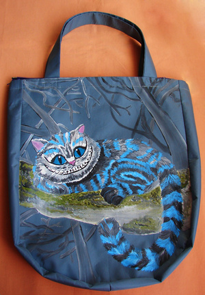 Я Лениными сумками восхищалась и раньше. Она еще футболки расписывает. Все нет денег ей заказать с такой мордулей футболку.