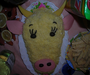 Мне жалко есть такие салаты. Ну как вот, садишься за стол, положите мне пожалуйста носик коровки или оторвите ушко, а лучше я съем глазик...........Я в этих гостях буду голодная.