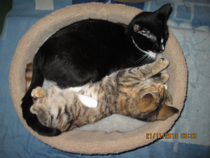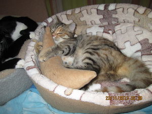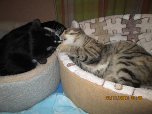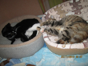 ааа, Аленка, это же мои пристроенные морды. Надя спасибо за фото. Это Арсений и Луша (Маргоша). Спасибо Алена за лежаночки моим любимым попкам.
