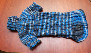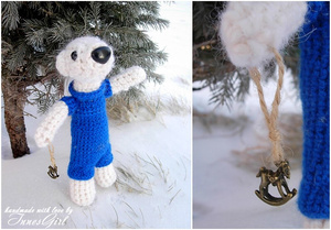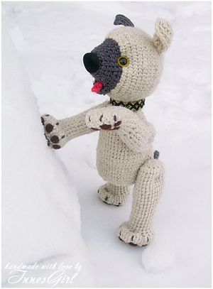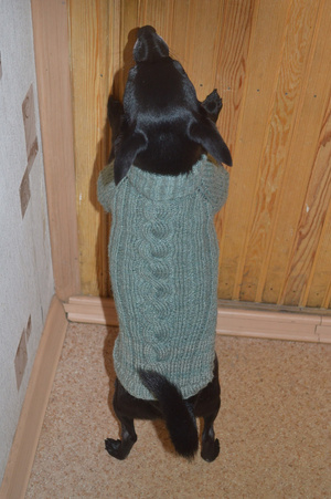 Теперь буду учится комбезы вязать, свяжем ему с лапками и капюшоном, вообще реальный пацан будет