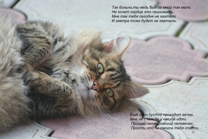Заставка на экране — фото одного из моих пушистиков, и смотрю каждый раз на него, когда сажусь за комп. Плачу, не без этого. И разговариваю. Так легче и ВСЁ, что было нашим ВМЕСТЕ, продолжается, и никто никуда не ушел — он со мной...