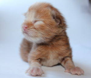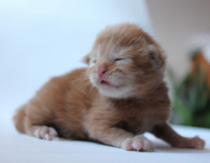 Красный парень, толстенький бегемотик, едва родившись, с криком "вааау" , абсолютно по варварски кинулся раскидывать своих старших однопометников, лежащих на пути к сладкой титьке, и поэтому я пока назвала его Конан.