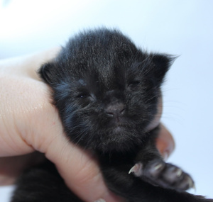 Мама Зитта долго не хотела являть детей свету, поэтому черный мраморный парень родился с одним открытым глазом, как одноглазый пират, и имя образовалось ему само-собой Корсар (ApolloPride Corsair).