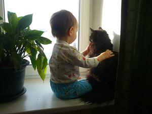 Кузеныша привезла 1,5-месячным: совсем ребенок, Рыжик его признал практически сразу.