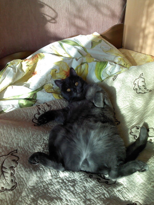 Лен, а у меня Оддька жуёт простыни, которыми я укрываю их. Она сначала сосёт её, обслюнявливает, потом начинает грызть, и получаются ровные маленькие дырочки в диаметре 3см. Уже и ругали, и игрушек много всяких, которые можно погрызть, но нет, продолжает. Хочу Вилюне одеялко у Инны заказать, как подумаю, что Одри и его в дырочку сделает...Что не хватает животинам, что они тряпки жуют...