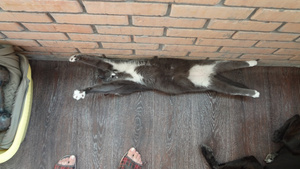 Хорошая прелесть, мой любимый окрас . И морда-сама невинность. Обувь вся целая ?