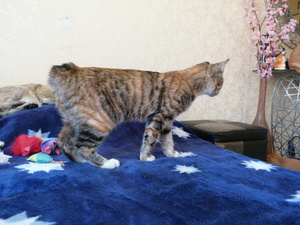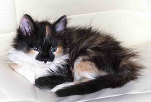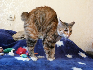 Окрас наверное черепаха, а еще мне кажется она оочень похожа на Бобтейла, у нее и хвостик в калачик закручен и задние лапки явно длиннее передних. Или я ошибаюсь?