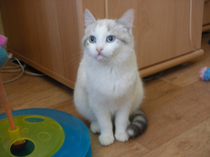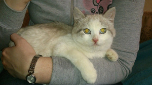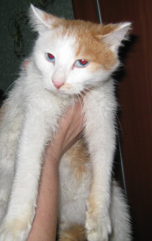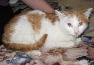 «Здравствуйте, Светлана, кот очаровательный и очень нарядный, хоть и очень грустный, но он имеет голубые глаза под действием другого гена - Белой пятнистости, которая при большом количестве белого в окрасе сопровождается голубыми глазами. Он не носитель гена So, но тем не менее он заслуживает внимания и любви. Спасибо, что Вы его опекаете, может быть ему повезёт и он найдёт доброго хозяина».
