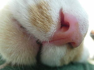 у Чуски нос розовый, а она чёрная черепаха... однотонно розовый нос обусловлен тем, что окрас "с белым"? т.е. если бы была черепаха без белого - то нос бы был чёрный или коричневый? или розовый, но неоднотонный, а с пятнами?