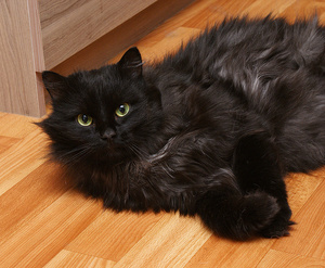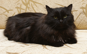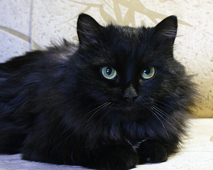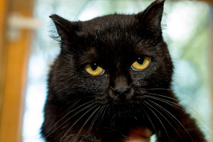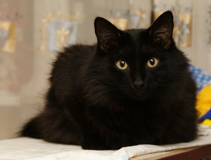 Чёрную кошку надо фотать при дневном свете без вспышки, иначе она отсвечивает