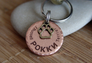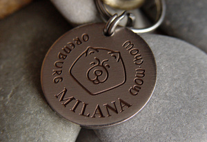 Давно делаем только пластинки металлические -см 5 , гравировка с 2 телефонами на одной стороне, слово "вознаграждение" на другой. Кольца от готовых адресников выбрасываю-сильно маленькие и хлипкие, беру крупные толстые брелки для ключей ( 3 см минимум диаметр) и оттуда уже кольцо вынимаю. За 3 года пока ничего не потеряли .