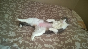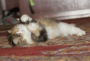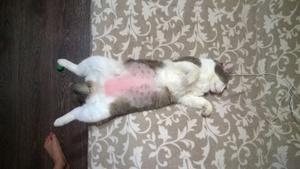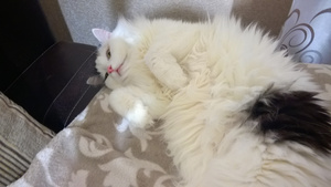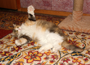 Напомню, что Барс, хоть и хулиганистый кот, и наподдать может в запале игры, но всех любит, всех приголубит, помоет, вплоть до интимной гигиены. Причем ему плевать на мнение объекта - лапой придавит и делает свое дело. Сеня по этому поводу сильно бесился и психовал. Как можно - шершавым языком к его августейшей жопке лезть! Первое время вообще истерично орал, когда Барс его мыл, пытался вырываться, скандалил.