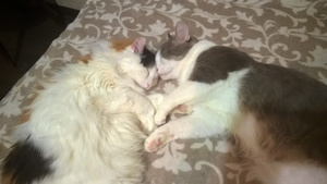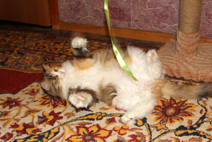 Барсик ее очень любит. А Алиска - его, терпит все его нежности, просто млеет в его сильных лапах.