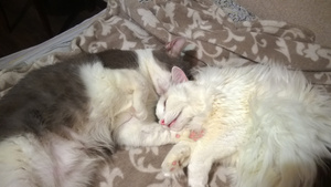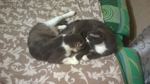 И что мы увидели вернувшись? Котята так сдружились за это время, что Арсений не то что не психует, когда Барс к нему с нежностями лезет - он даже сам начал ухаживать за Барсом! Такая милота на них смотреть!