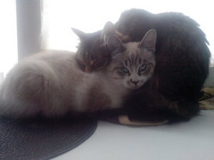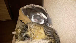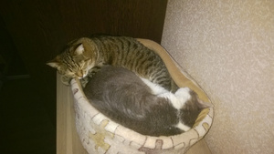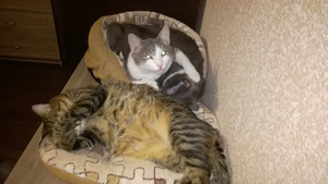 Во-первых, хочу похвастаться теплыми отношениями, которые сложились-таки между подобрашкой Барсом и Главным котом Арсением (который считает себя аристократом, повелителем, голубой кровью и т.п.)