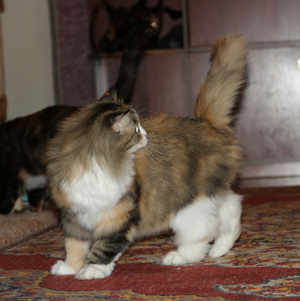 А вот мои хвосты) Старшая - уличная обыкновенная а-ля "Сибирская") Хмурая, нелюдимая, своенравная, строгая тётка) Младшая - вечный ребенок, робкая особа) Тихая, нежная, пугливая, строит из себя глупенькую))))