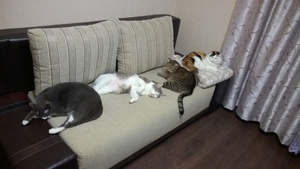 Шикарны )))) , даже не знаю, кто мне больше из них нра :biggrin: У меня только один вопрос: а где вы спите :rofl: так плотненько диванчик котохвостами "забит"