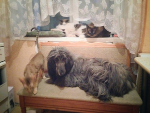 Нужно написать кто они такие попозже) Бенч не доволен, говорит - что за фигня, почему нас всего четверо? В прошлой семье у меня было 11 котиков...