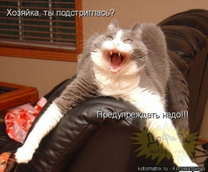 - Алло! Это психиатрическая клиника? Моя хозяйка думает, что у неё говорящий кот! Да, выезжайте скорее!