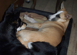Да:) Это здорово, когда у собаки всё впереди. Но мне немного грустно стало от этой фразы. 7 лет назад, когда у нас появился Мухтарчик, я смотрела на него и радовалась. Кокой он маленький, весёлый ребёнок, у которого вся жизнь впереди. 7 лет пролетели незаметно. Мухтарчик вырос, был самой любимой и преданной собакой на свете. Но недавно , в июле этого года он заболел пироплазмозом. Очень долго его лечили ( под капельницей бедненький лежал по 5-7 часов в день. Мы очень надеялись, что удастся его вытянуть...) но отказала поджелудочная железа и Мухтарчик умер. Вот мы и взяли нашего попрыгушу, чтоб совсем умом не двинуться, я ни о чём думать не могла. Опустились руки и ничего не хотелось делать. Арсюшка стал нашим спасением. А когда увидела мордочку Дуси в объявлении, у меня чуть сердце не выскочило. Она так похожа на Мухтарушку в детстве... Вот и позвонила по телефону, который был дан в объявлении. И случилось чудо! Нам смогут её привезти!!!И у Арсюши будет друг. Слава Богу есть где развернуться. Участок 30 соток:)