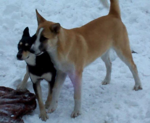 Здравствуйте. У нас в доме появилось маленькое сокровище: щенок ( метис западно-сибирской лайки с дворянином) Сегодня ему ровно 2 месяца исполнилось. Но это не ребёнок, а торнадо. Его даже погладить невозможно. Весь выворачивается, прыгает, кусается (он так играется) и очень доволен своим поведением. Очень хорошо, практически с первого дня стал понимать слова ФУ и НЕЛЬЗЯ, но.... реакция на них недолгая. Спустя несколько секунд продолжает свои кусачьи игры. Такая подвижность у него с 6 до 9 утра, потом спит почти весь день, просыпаясь только покушать и выбежать во двор в туалет. Кстати умничка сразу понял где и что надо делать. Аварии случаются (лужи), только если входная дверь закрыта. и то поскуливает у двери, если успеваем открыть, то пулей выскакивает, а сделав все дела довольный возвращается. День проходит очень спокойно, ну а с наступлением вечера только держись! Залезет везде, куда можно и куда нельзя, всё попробует на зуб. У него есть игрушки, но с ними он редко играется. В основном ему доставляет удовольствие прыгать , кусать за руки или воровать тапки и убегать с ними в зубах. Мальчик замечательный, очень сообразительный, но эта его активность( хорошо хоть ночью стал спать, а то первые 2-3 дня и ночами требовал, чтоб с ним играли) и кусание рук, что-то мне не очень нравятся. И главное упорно пытается настоять на своём. У нас до него была собака, тоже со щенячьего возраста. Тоже очень активный мальчишка, ещё и с лидерскими задатками, но таким кусачкой он не был. Как-то сразу понял, что кусать руки нельзя. Вырос замечательным псом, воспитанным и послушным. А с этим хоть что делай, он стоит на своём.