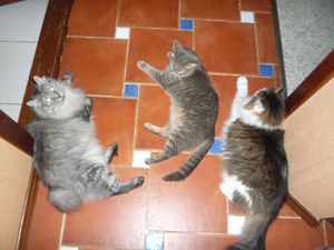 Утром картинка: 3 котоморды ходят, об ноги трутся и явно дают понять (в том числе голосом): "Жрааааааать!" Четвертая котоморда прошмыгнула мимо и улеглась в самую любимую (ими всеми) лежанку. И пустой пакет на столе.