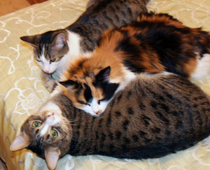 Смотрю на такие "лежбища котиков" и завидую!А мои два месяца живут уже рядом. а все мир не берет!((
