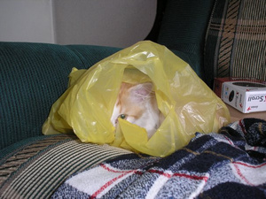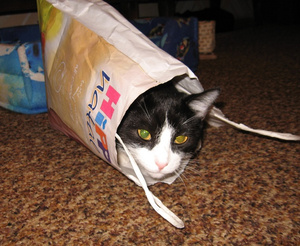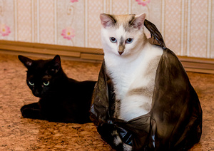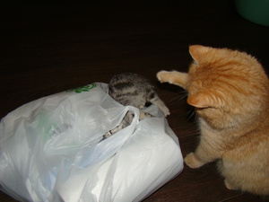 Шаня очень любит Барсика и если судить по их взаимоотношениям, то пакет - это скорее гараж, в котором засиделся Барсучок
