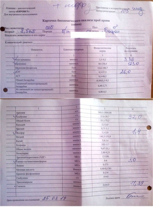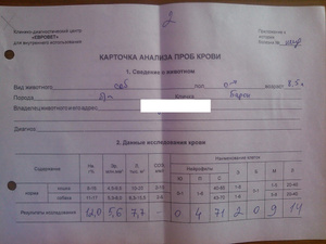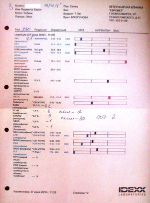 PS. Много времени ушло, чтобы получить результаты анализов Барона из клиники и куратору одной из Таниных собак, что помог с получением оных. Клинике не мешало бы освоить простую операцию, как то отправка полученных данных на эл.почту.