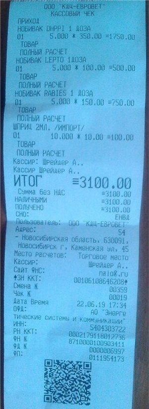 2. 620 за вакцинацию с Нобиваком (с бешенством);