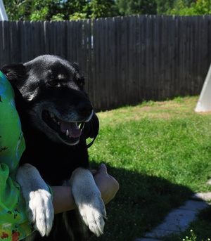 Чуть больше 3-х лет назад Барон перешел под наше попечение от Наташи темной лошадки, у Наташи оставались еще 4 собаки: возрастные Шерхан и Мергена, и более молодые Ник и Мишель.