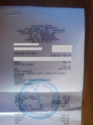 2. - 365 руб. за лекарства (чек приложен)