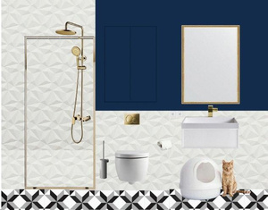 Создавая дизайн жилища нельзя забывать про нужды питомцев. А если санузел всего 2,7 м2 и туда нужно впихнуть и душевую с туалетом и постирочную и лоток для упитанного котика? Мы решили использовать туалет бокс для кошек и разместили его поз навесной раковиной.
