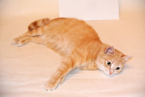 Ну вот-вот. Рефлексы это. Так и должно быть (либо нужно избавлять от рефлексов). Ну и чего переживаете не знаю, получился прикольный рыжый кошак.