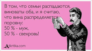 А мужу моему повезло с тещей, первый муж так же думал. 7 лет как развелись, а он все с моей мамой общаться хочет.