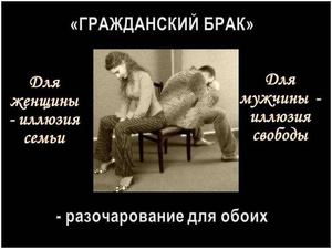 > т.н. гражданский брак опасен для девушки тем, что ей попользуются в свое удовольствие и заменят на другую
