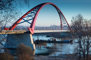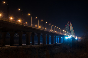 Кстати, когда я с пешеходного моста снимал Бугринский мост, рядом наблюдал интересную сцену. Там с откоса вниз на остановку ведёт лестница с перилами. Так вот по этим перилам пыталась съехать на скейте какая-то девчонка. Наверху на палку поставила какую-то фигню типа смартфона и пыталась сделать селфи.