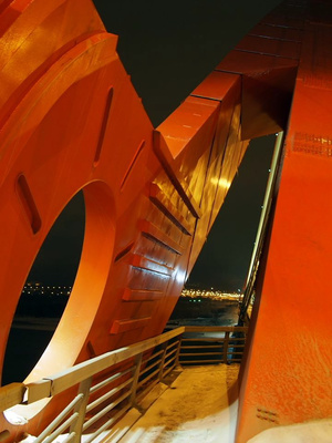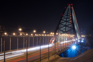 А внизу совсем рядом проезжая часть, и девчонка постоянно плюхалась в снег в конце перил, чтобы не вылететь под машины. Селфи, похоже, не получались, и девчонка делала дубль за дублем. У меня на съёмке моста совсем замерзли руки, и я поспешил смыться в тёплую машину (был мороз ниже 20 гр.), а так хотелось ещё и эту кувыркающуюся девчонку поснимать на видео...