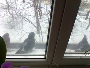 семечек купили, такие специальные на рынке продают, не очень красивые) и хлеба накрошили.