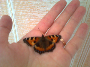 бабочки уже то ли умирают, то ли засыпают....я не сильна в насекомых....залетают и зависают...последнее дыхание лета в городе)