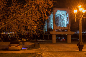Это один пролет ж/д моста, который был построен через Обь в конце 19 века )) по сути - того, вокруг чего был построен Новосибирск ))) и, да, он находится в парке "Городское начало", что рядом с Автовокзалом )