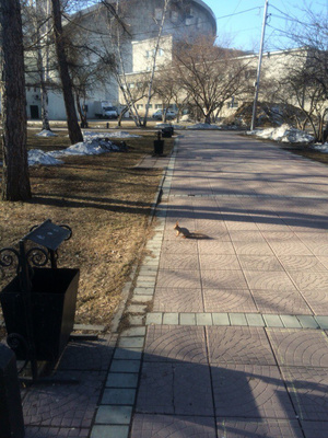 Смотри-ка ,белки уже возле цирка. Скоро будут такой же обыденностью как голуби.