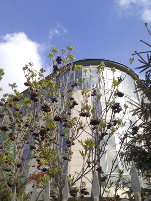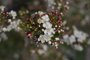 Меня просто контраст поразил. Осенью я фотала красные ягоды, гроздьями висящие на кустарниках. И вот весной - это гроздья стали черными. И тут же новые, свежие листочки. Круговорот живого.