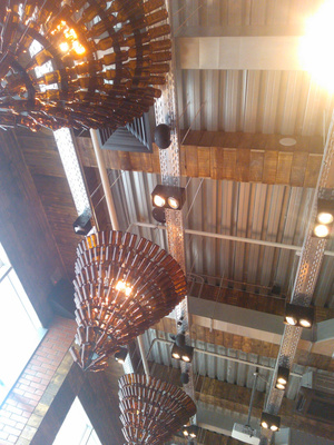 Люстры из бутылок (наверно очень удобно и безотходно, но для кухонь с очень высокими потолками