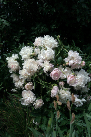 Пионы хороши! 3 цветочка выглядят как роскошный букет. А мне понравился собак, утомившийся от жары.