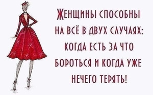 Быть бабой — это когда ты ведёшь войну: выигрываешь, проигрываешь, а мужик твой даже и не знает, что вы воюете.