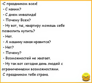 — Добро пожаловать в рай, господин депутат. Только, к сожалению, прежде чем вас здесь поселить, должен вам сказать, что нужно решить одну небольшую проблему. Видите ли, это большая редкость, чтобы политик такого ранга попал в рай, и мы, по правде говоря, даже не знаем, что с вами делать. Поэтому мы решили, что один день вы проведете в аду и один в раю, чтобы вы сами могли свободно решить, где проводить свою вечность.