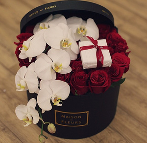 Мне так стали нравиться цветы в шляпных и простых коробках, такая прелесть, флористика просто на глазах развивается. Поэтому вот такой букетик, пусть и виртуальный, может, хоть немного порадует