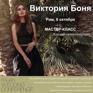 Дорогие девушки! Напоминаю, что 6 октября в прекрасном городе Рим, в рамках Italian Wedding Conference, состоится мой очередной семинар для женской аудитории! На нем вы узнаете: - Как избавиться от внутренних страхов, комплексов, ограничений. - Как правильно распределять свою энергию, откуда её черпать. - Самореализация: как найти свой путь. - Правильная постановка и достижение целей и многое другое! Жду всех!